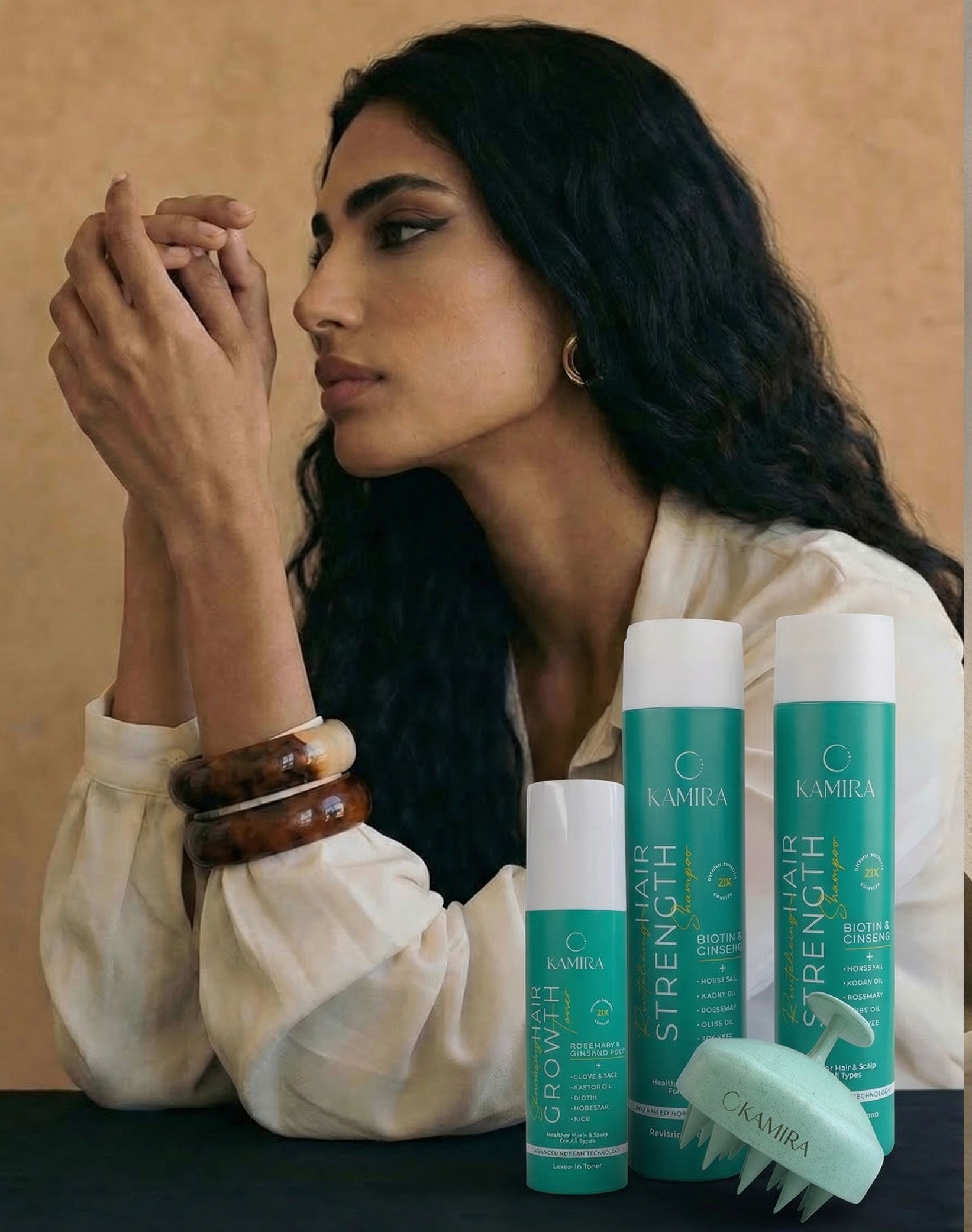 Infused with Biotin, Ginseng, Tea Tree, and Rosemary, this three-step ritual works in harmony to strengthen from root to tip. The shampoo deeply cleanses and energizes the scalp, the conditioner locks in silky hydration for smoother, thicker hair, and the toner mist revitalizes follicles to boost growth and shine. Experience fuller, healthier, more radiant hair — every day, naturally.